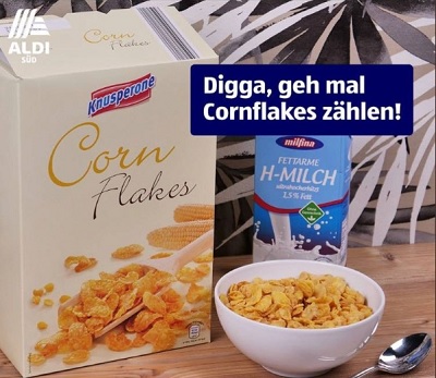 Es waren allerdings nicht nur die Medienhäuser, die aus Löhmannsröben Wutrede einen echten Kassenschlager machten. Innerhalb weniger Stunden häuften sich Scharmützel und PR-Gags. Inzwischen werden T-Shirts mit dem Aufdruck "Wenn das ein Schiri ist, weiß nicht Digga, soll der doch Cornflakes zählen gehen" verkauft, Aldi Süd (siehe Bild) nutzte den Slogan für seine Cornflakes-Werbung, und nicht zuletzt modifizierte ein Nutzer das Schiedsrichterprofil von Markus Wollenweber auf dem Portal FuPa um den Zusatz: Erfolge: Deutscher Meister im Cornflakes zählen.