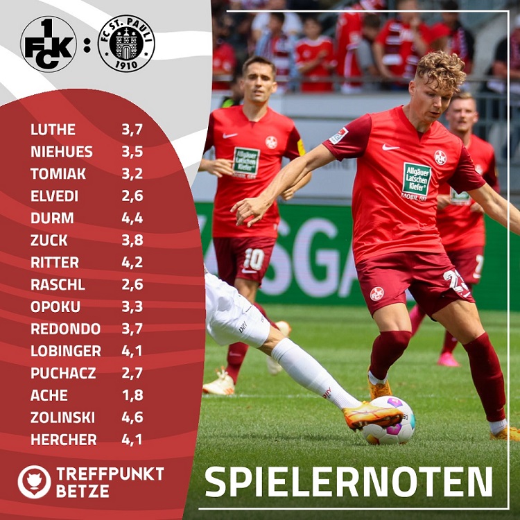 Mit Beginn dieser Saison bewertet die Treffpunkt Betze Redaktion die Leistungen der Spieler, die mindestens 20 Minuten auf dem Platz standen. Die Spielernoten zu #FCKFCSP:
