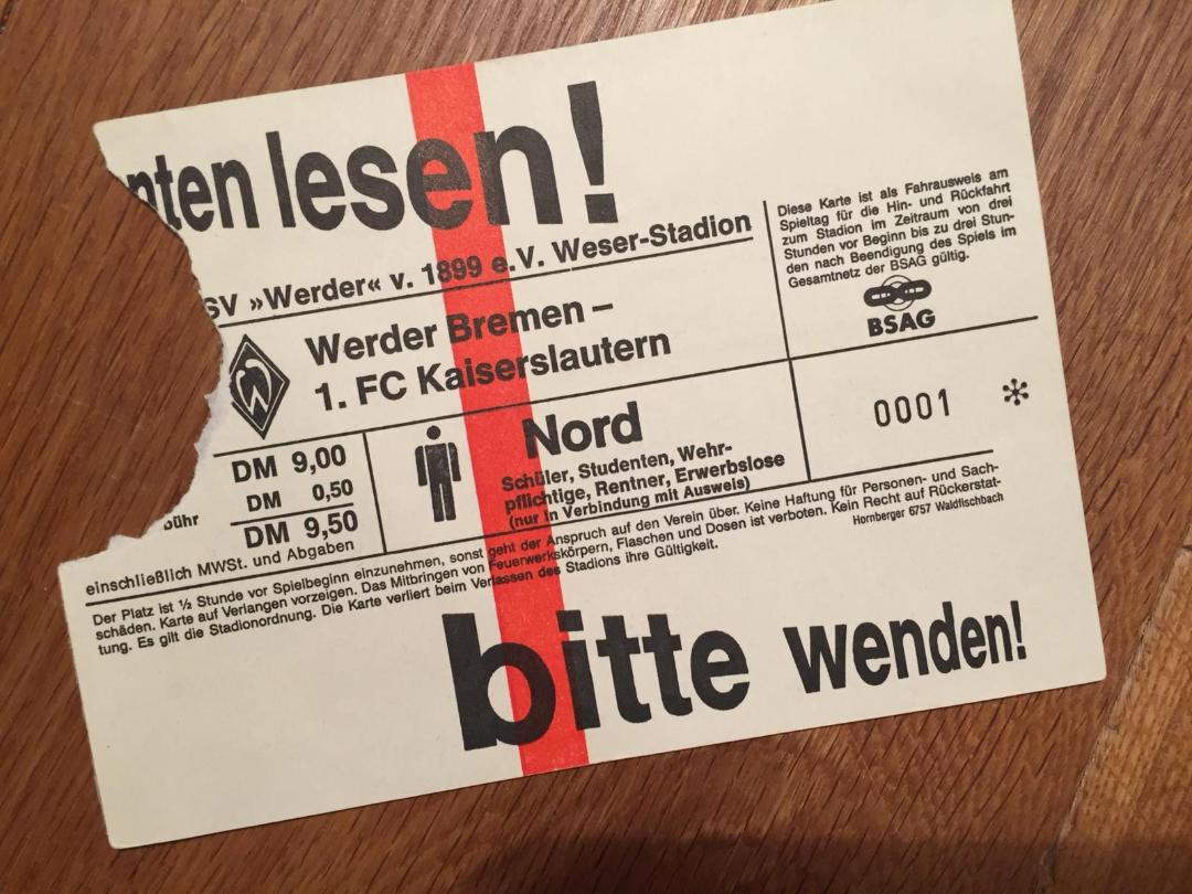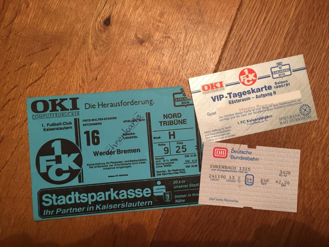 Christiane: Auch hier wieder nach Bremen, das müsste bei mir 1993 gewesen sein. Es waren Osterferien und ich war mit meinen Eltern an der Nordsee im Urlaub. Ich habe sie überredet, dass wir auf das Spiel gehen. Leider haben wir es verloren. Ich fand Auswärtsspiele schon immer etwas Besonderes. Du bist weitab der Heimat, auf einmal merkst du es rottet sich um dich herum etwas zusammen, du hörst den dir vertrauten pfälzischen Dialekt, siehst FCK-Outfits, das fand ich schon immer unheimlich schön und besonders.
