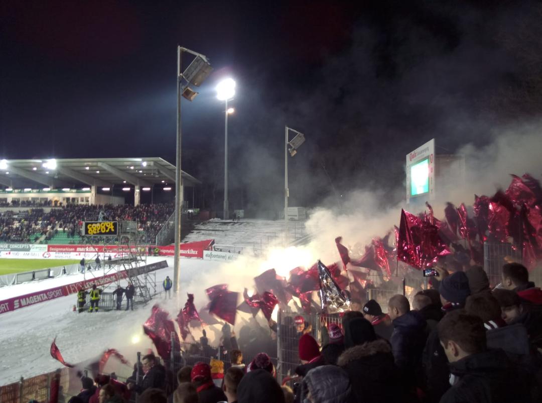 Unterstützt wurden die Roten Teufel wie immer bombastisch. Rund 1.500 Fans fanden den Weg ins Münsterland. Mal wieder ein Ausrufezeichen für einen Freitag Abend.