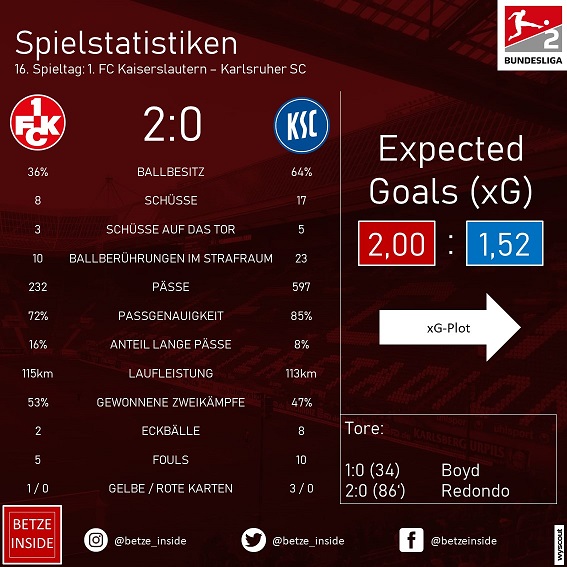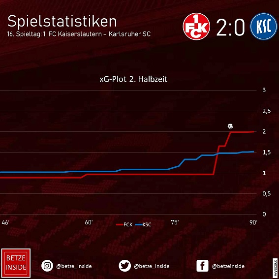 Derbys kann der FCK! Die Partie gegen den Karlsruher SC hat wieder einmal unter Beweis gestellt, dass ein ballbesitzorientiertes Auftretenz wenig bis nichts darüber aussagt, wie gut die Leistung eines Teams ist. Der KSC war zwar dominant und wirkte spielerisch reifer, wurde jedoch kaum gefährlich. Außerdem kamen die Roten Teufel mit gerade einmal acht Schüssen auf einen xG-Wert von 2,0. Sprich: Wenn abgeschlossen wurde, dann meist aus sehr guten Positionen.